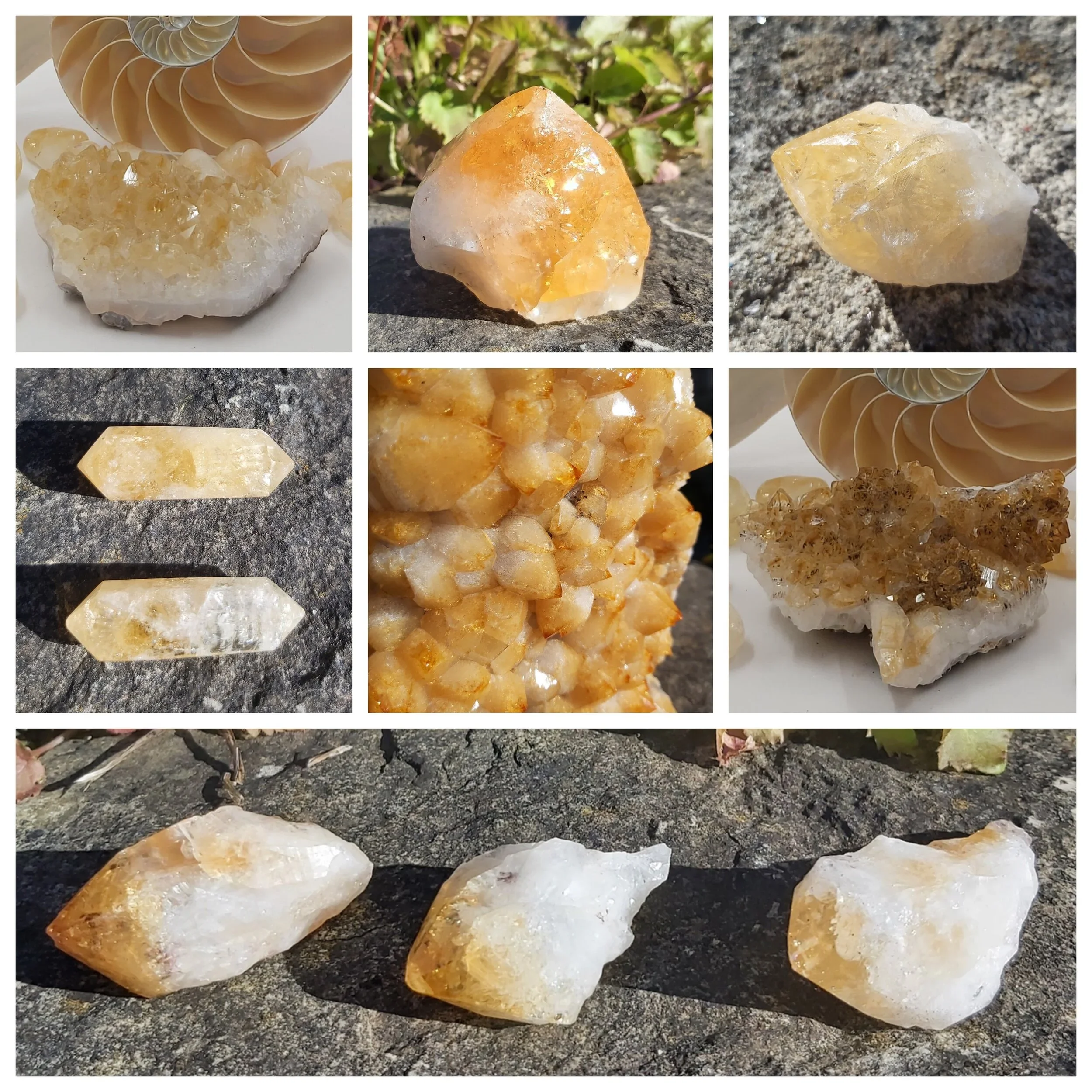 Citrine is a member of the quartz family. It forms single crystals and clusters, and is also found in massive form. Unlike Clear Quartz and Smoky Quartz, which often have long parallel sides, Citrine crystals tends to be more stubby.